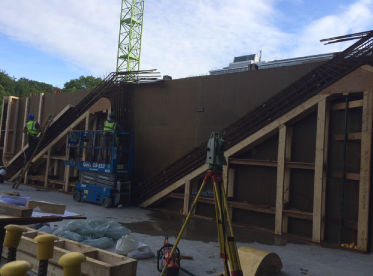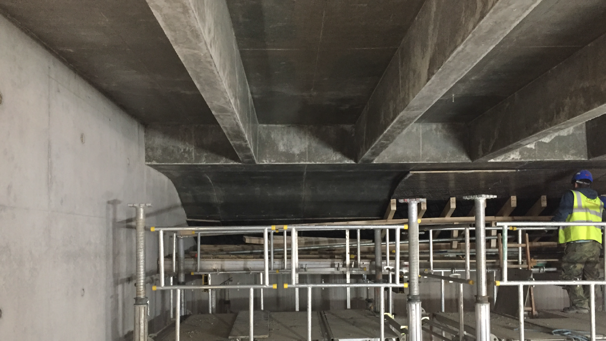 At the improvements of the historic Lincoln's Inn site, one of the uses for the main East Terrace basement that we constructed was for a lecture theatre. In the following photos you can see the concrete work as the formwork is being removed,